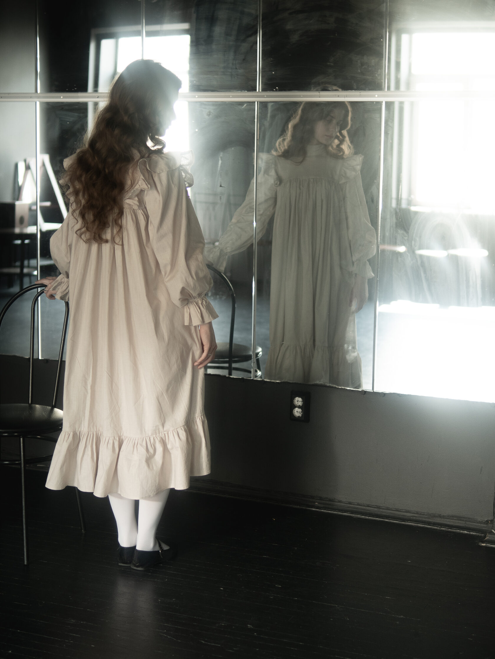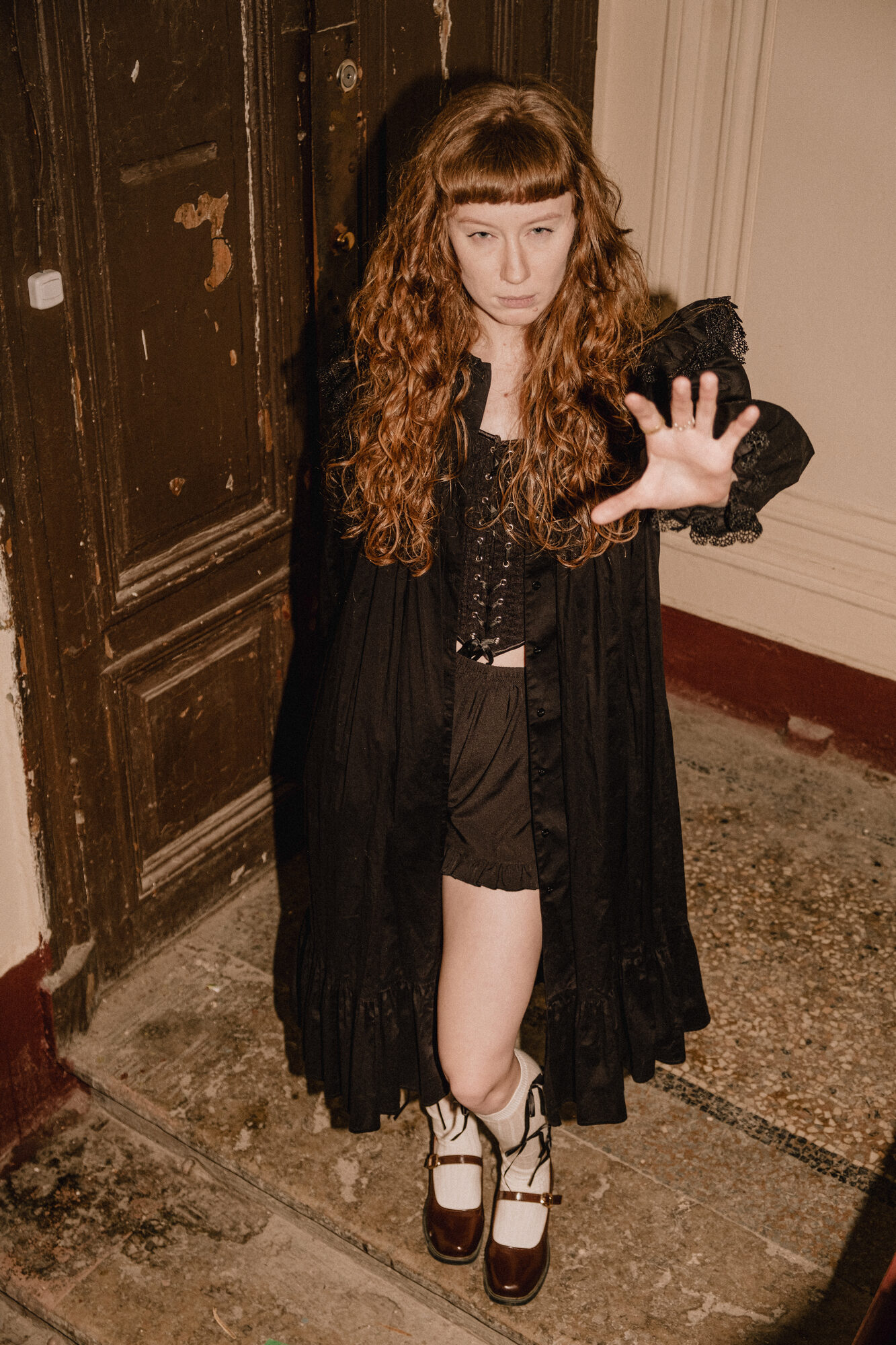Добро пожаловать в фантасмагорию Oloris Cor. Фольклорные предания, воплощенные в ткани. Синтез мрачных сказок и выцветших викторианских фотографий. Платья фарфоровых кукол, заблудившихся в темных лесах. Эзотерические ритуалы и хороводы. Американская готика встречает русскую хтонь.