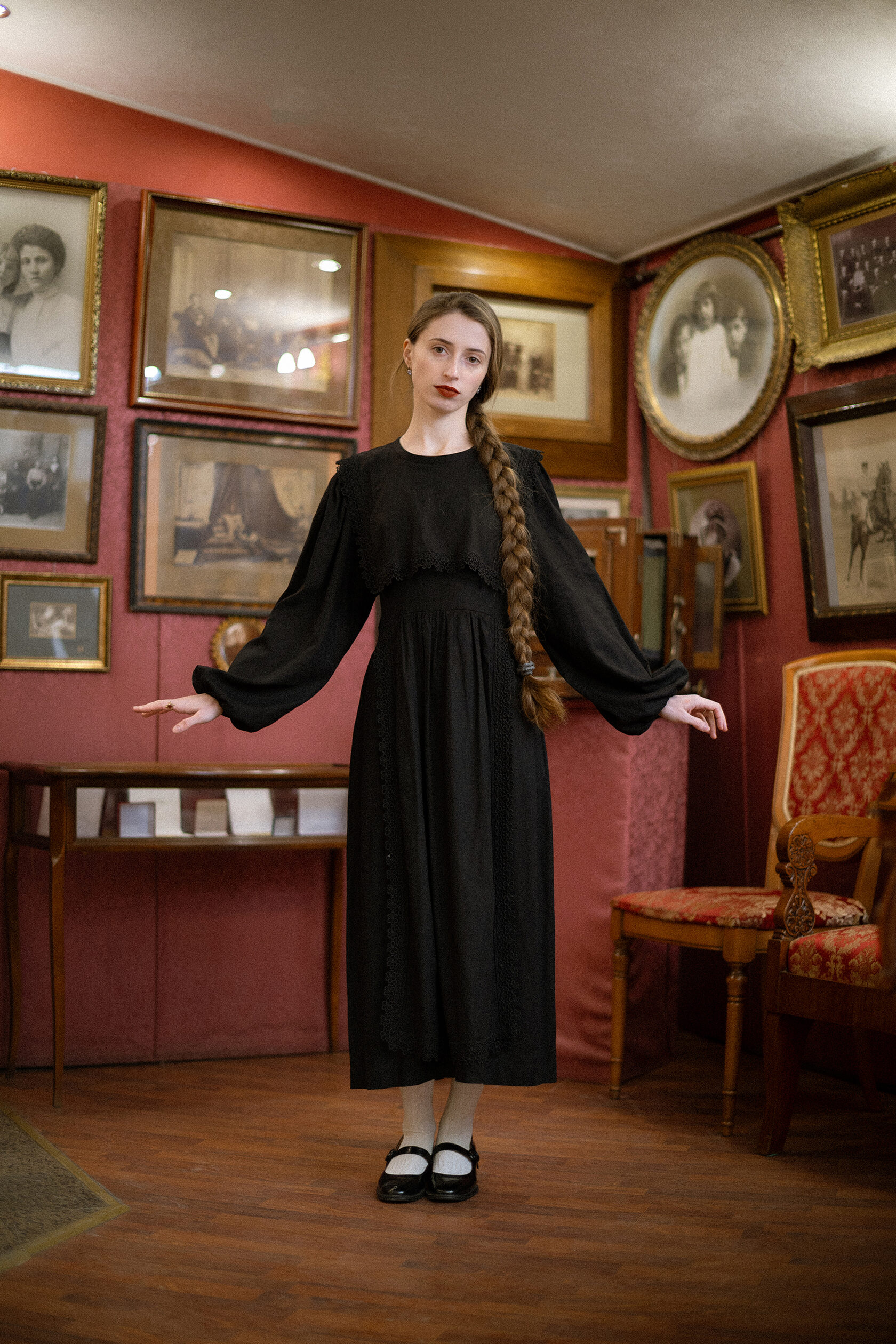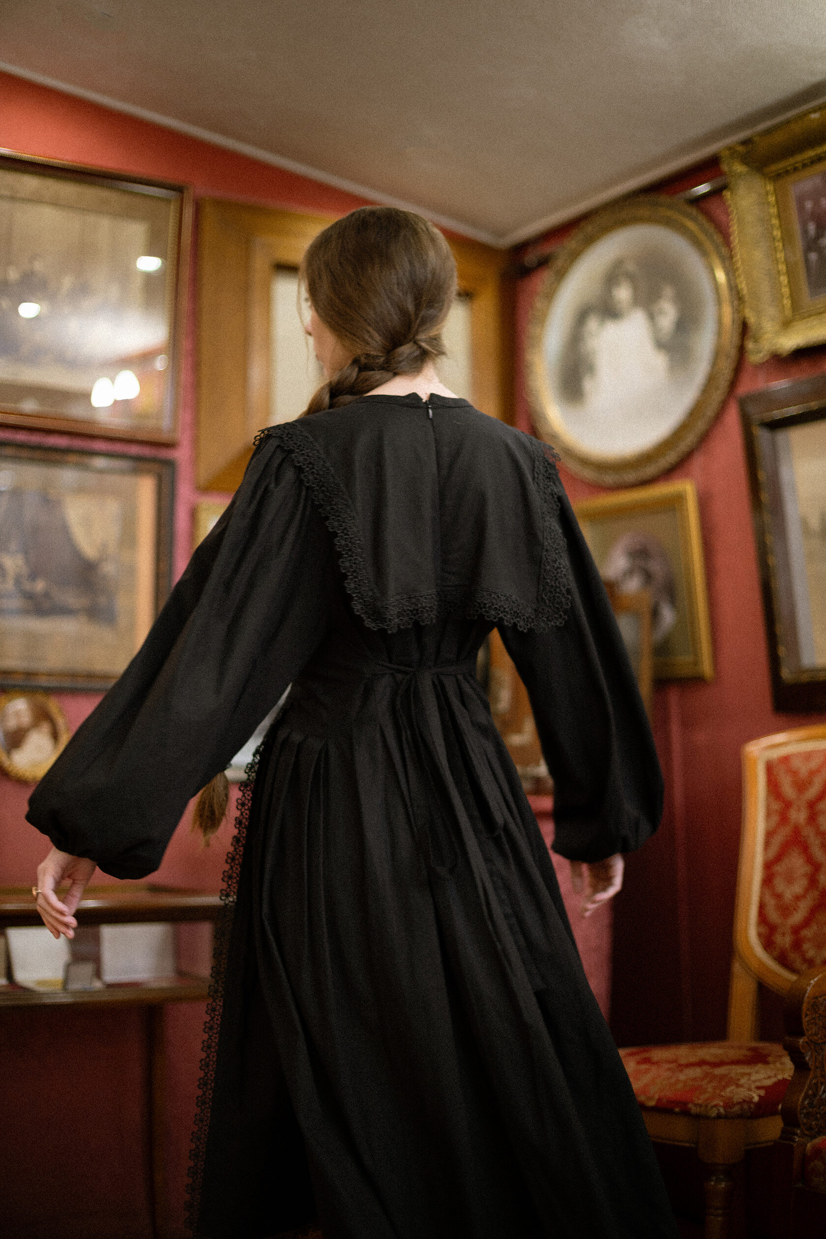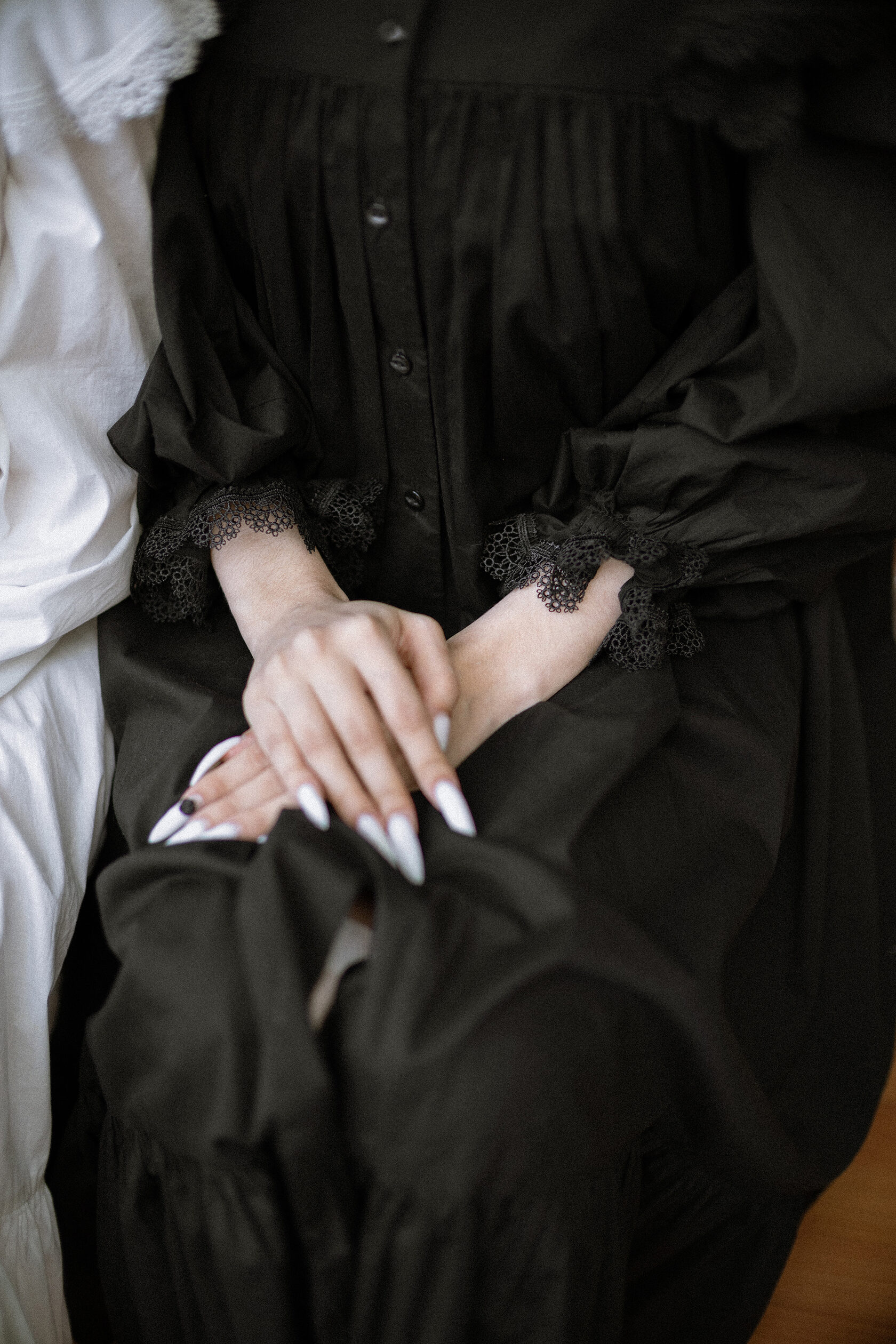 Добро пожаловать в фантасмагорию бренда Олорис Кор. Фольклорные предания, воплощенные в ткани. Синтез мрачных сказок и выцветших викторианских фотографий. Платья фарфоровых кукол, заблудившихся в темных лесах. Эзотерические ритуалы и хороводы. Американская готика встречает русскую хтонь.